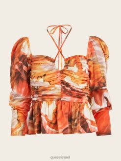 GUESS נשים אוולין מכנס קצוץ F8RV2163 לבוש מולטי צהבהב מלכותי