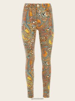 GUESS נשים עוף החול עולה סטילטו מס. 97 סקיני ג’ינס F8RV2286 לבוש הדפס עוף החול