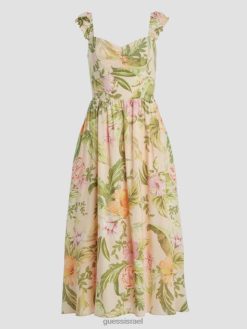 GUESS נשים מכנסי פשתן אקו מאיארה F8RV2330 לבוש היביסקוס של ירושה
