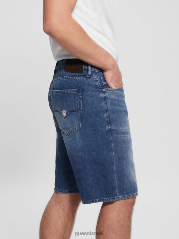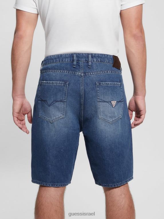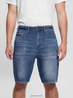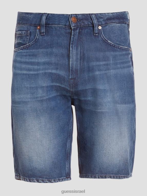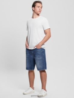 GUESS גברים מכנסי ג’ינס קצרים נהרסים F8RV3998 לבוש אופטי לבן להרוס