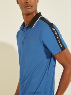 GUESS גברים דבק לוגו טייפ פולו F8RV4093 לבוש ספיר חשמלי