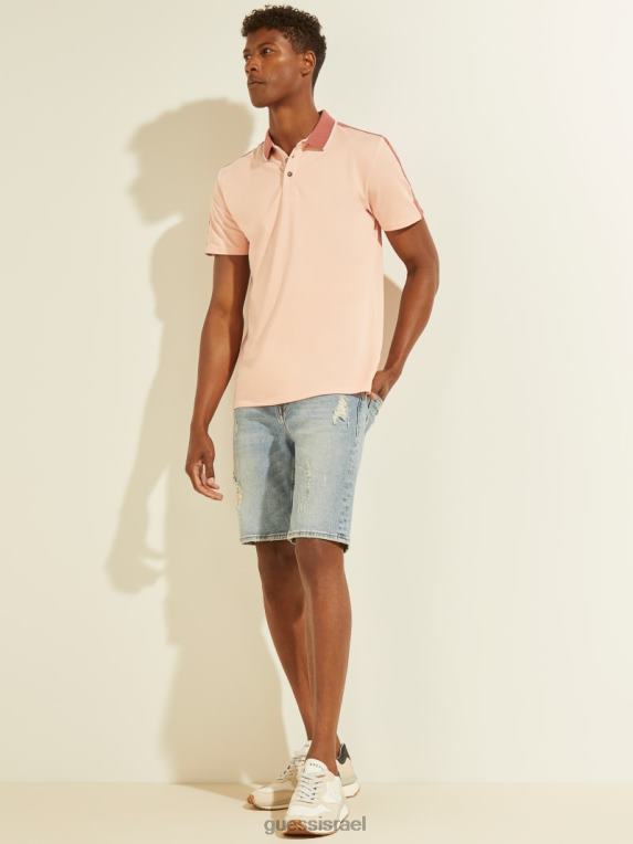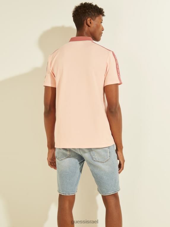 GUESS גברים דבק לוגו טייפ פולו F8RV4132 לבוש פריחה ורוד בהיר