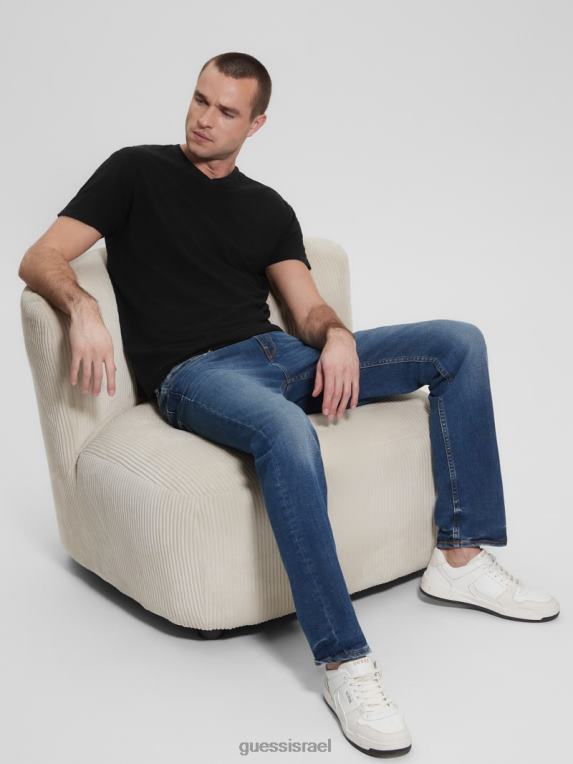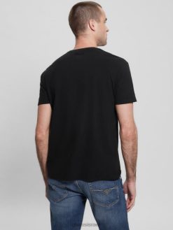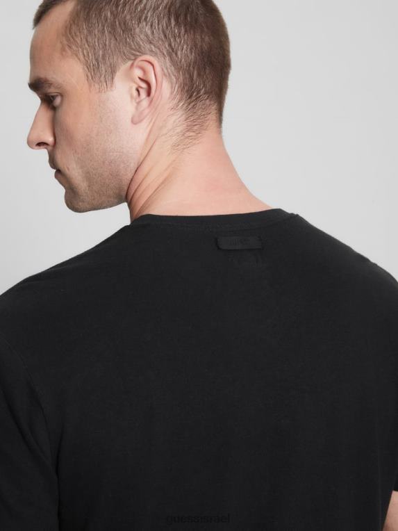 GUESS גברים חולצה אקולוגית בתערובת פשתן עם צווארון V F8RV4027 לבוש מולטי שחור ג’ט