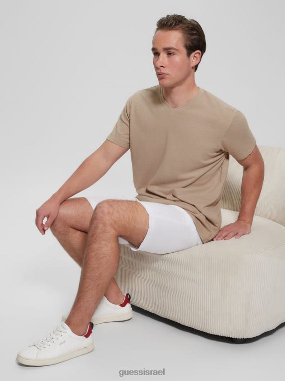 GUESS גברים חולצה אקולוגית בתערובת פשתן עם צווארון V F8RV4032 לבוש פסדינה אבן מולטי