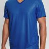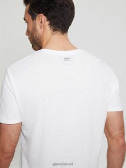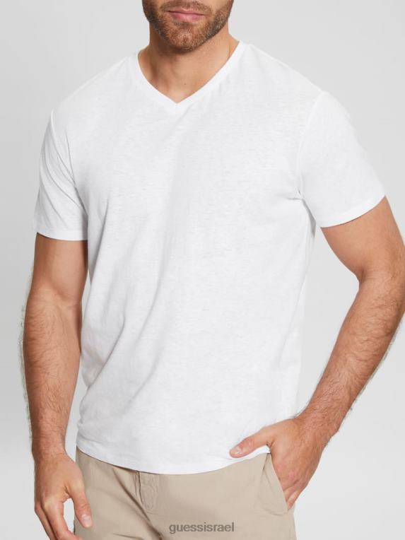 GUESS גברים חולצה אקולוגית בתערובת פשתן עם צווארון V F8RV3992 לבוש מולטי לבן טהור