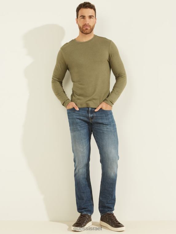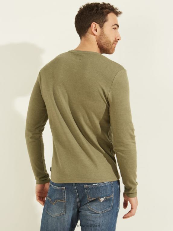 GUESS גברים חולצה נעימה עם שרוול ארוך F8RV4135 לבוש צבא זית מולטי