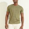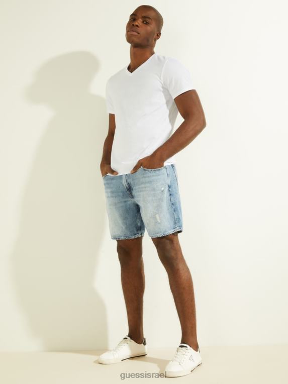 GUESS גברים חולצה עם צווארון V של מייסון F8RV4103 לבוש לבן טהור
