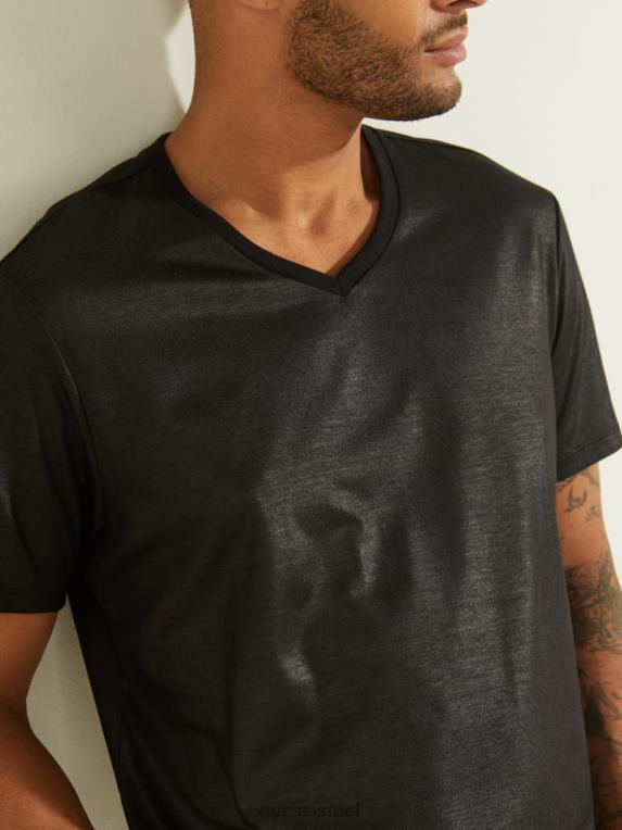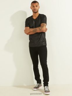 GUESS גברים חולצה עם צווארון V של מייסון F8RV4112 לבוש שחור כזפת
