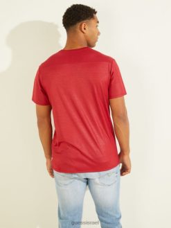 GUESS גברים חולצה עם צווארון V של מייסון F8RV4123 לבוש אדום צ’ילי