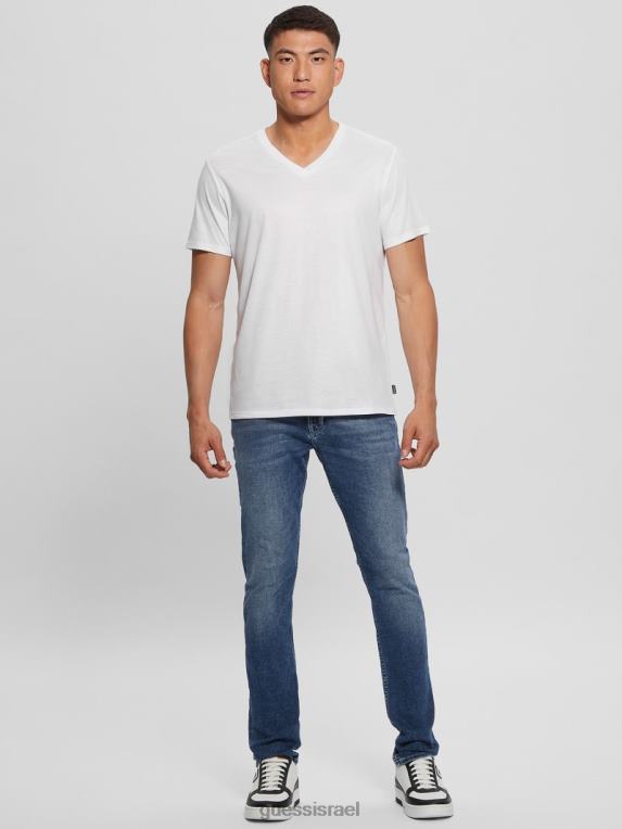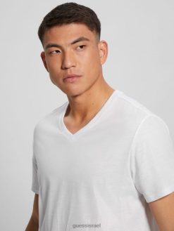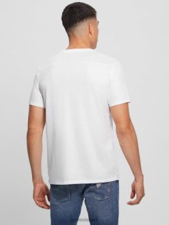 GUESS גברים חולצה עם צווארון V של מייסון yoke F8RV3949 לבוש לבן טהור