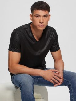 GUESS גברים חולצה עם צווארון V של מייסון yoke F8RV3974 לבוש שָׁחוֹר