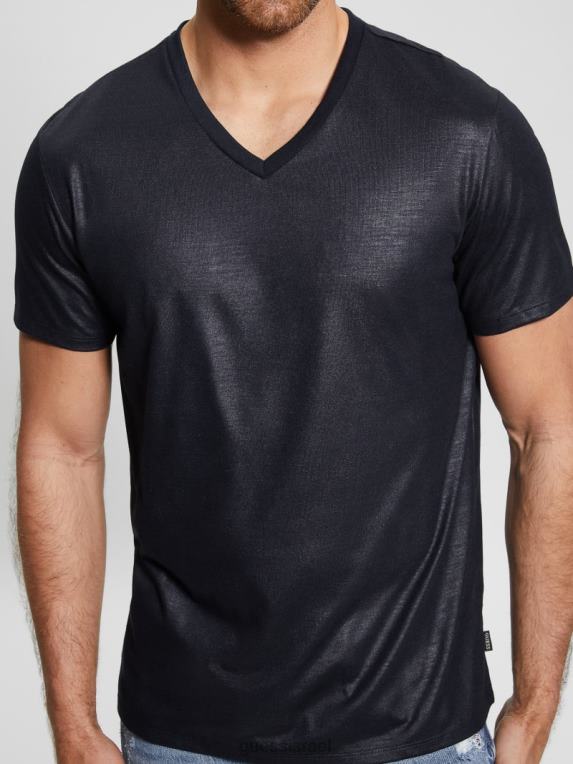 GUESS גברים חולצה עם צווארון V של מייסון yoke F8RV3981 לבוש כחול אלגנטי