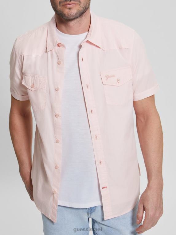 GUESS גברים חולצת נוטינגהאם F8RV3970 לבוש סומק כותנה