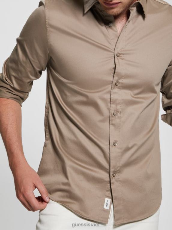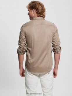 GUESS גברים חולצת סטרץ’ יוקרתית F8RV3963 לבוש שמפנייה