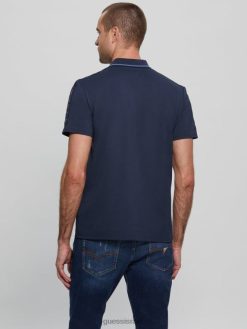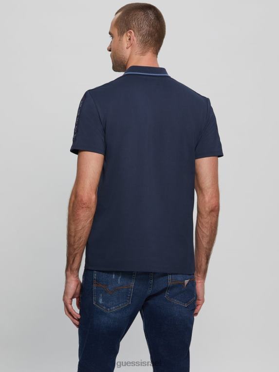 GUESS גברים חולצת פולו של פול פיקה טייפ F8RV4033 לבוש כחול משי