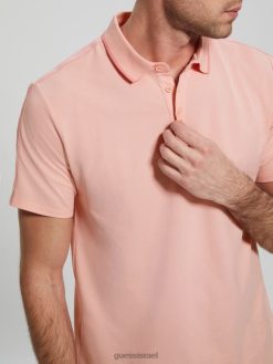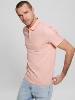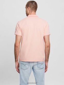 GUESS גברים חולצת פולו של פול פיקה טייפ F8RV4071 לבוש פריחה ורוד בהיר