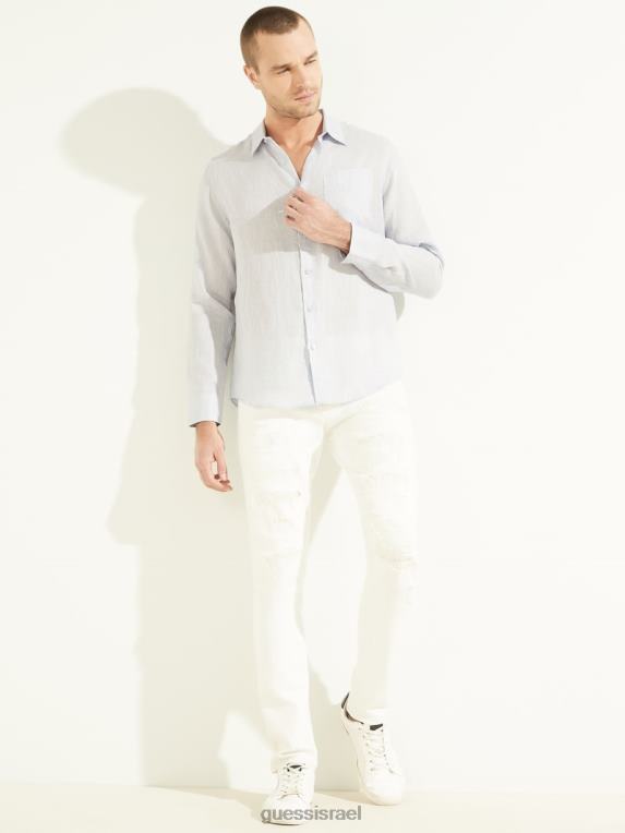 GUESS גברים חולצת פשתן של eco island F8RV4119 לבוש דרכי אוויר כחולות