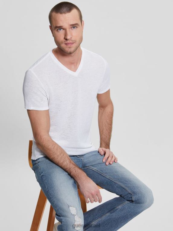 GUESS גברים טי גזה F8RV4004 לבוש לבן טהור