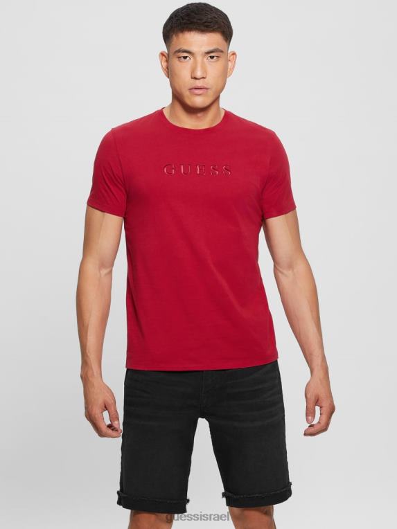 GUESS גברים טי לוגו רקום F8RV4005 לבוש אדום צ’ילי