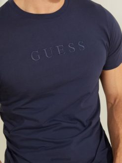 GUESS גברים טי לוגו רקום F8RV4034 לבוש כחול אחיד