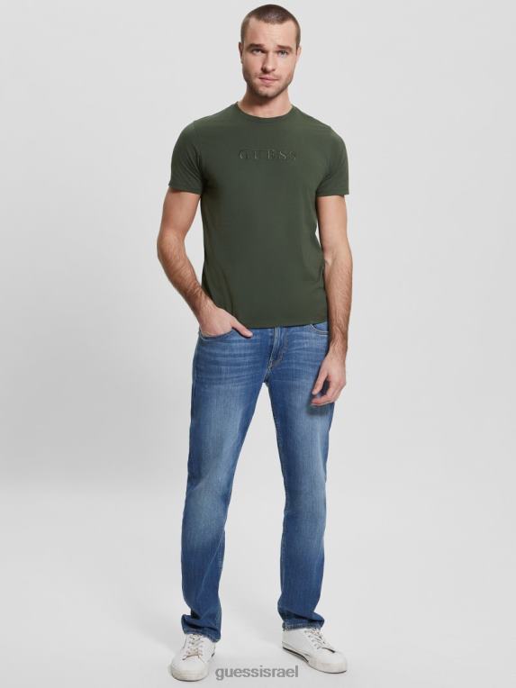 GUESS גברים טי לוגו רקום F8RV4063 לבוש ירוקי הג’ונגל
