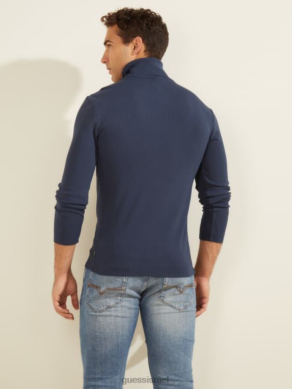 GUESS גברים טי צווארון גולף של Mateo F8RV4088 לבוש כחול משי