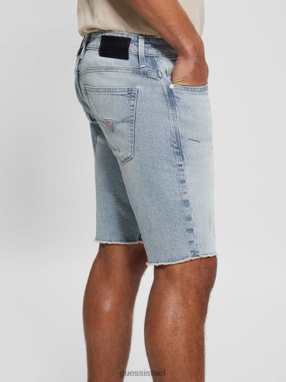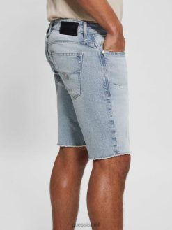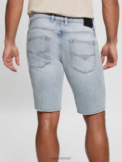 GUESS גברים מכנסי ג’ינס קצרים בכושר רגיל לקרוע ולתקן F8RV3996 לבוש סייבל שחור