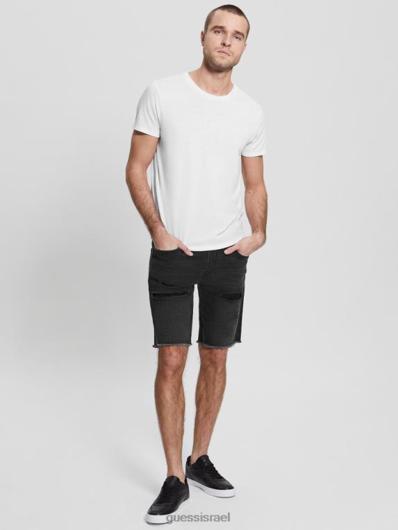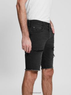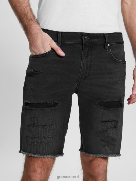 GUESS גברים מכנסי ג’ינס קצרים בכושר רגיל לקרוע ולתקן F8RV3996 לבוש סייבל שחור