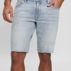 GUESS גברים מכנסי ג’ינס קצרים בכושר רגיל לקרוע ולתקן F8RV3996 לבוש סייבל שחור