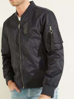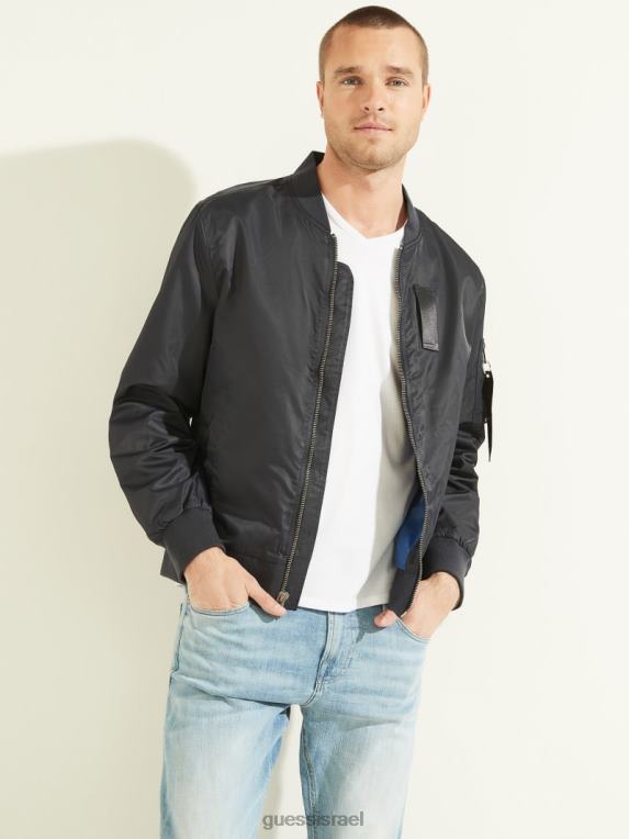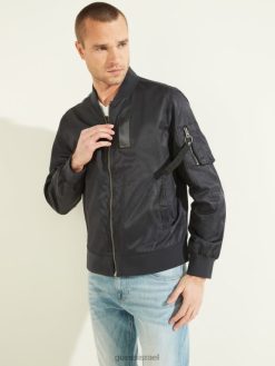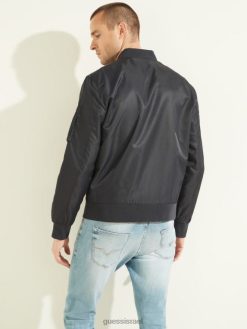 GUESS גברים מעיל טיסה מניילון F8RV4115 לבוש כחול אלגנטי