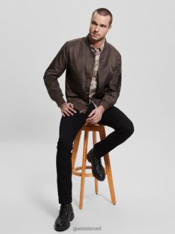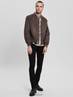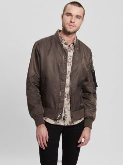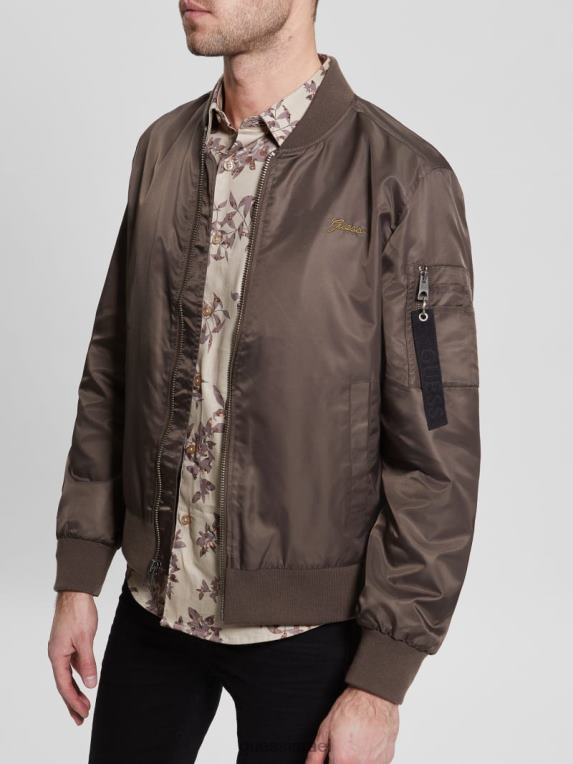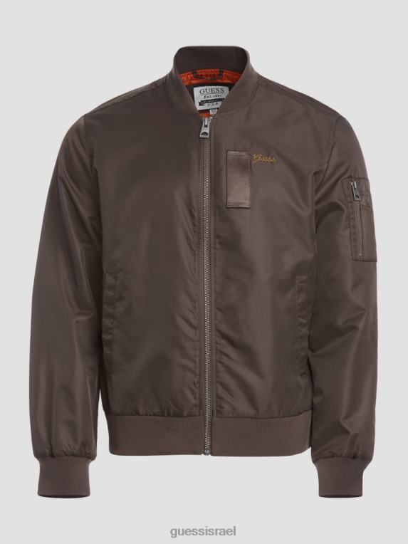 GUESS גברים מעיל טיסה מניילון F8RV4159 לבוש שוקולד חרובים