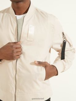 GUESS גברים מעיל טיסה מניילון F8RV4181 לבוש אבן אילמת