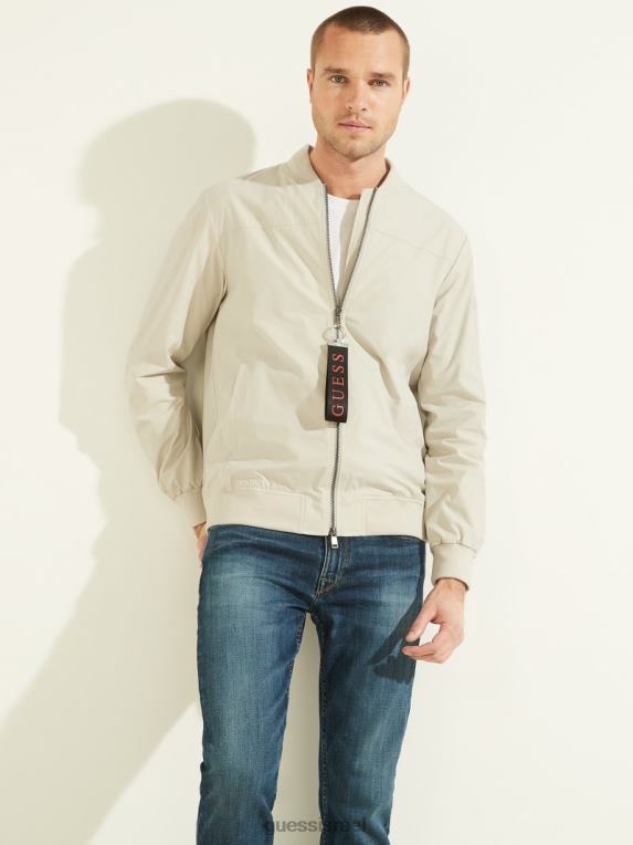 GUESS גברים מעיל טיסה נוחות F8RV4107 לבוש גבול אפור