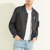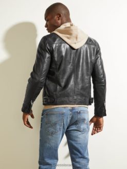 GUESS גברים מעיל עור לאופנוענים F8RV4116 לבוש שָׁחוֹר