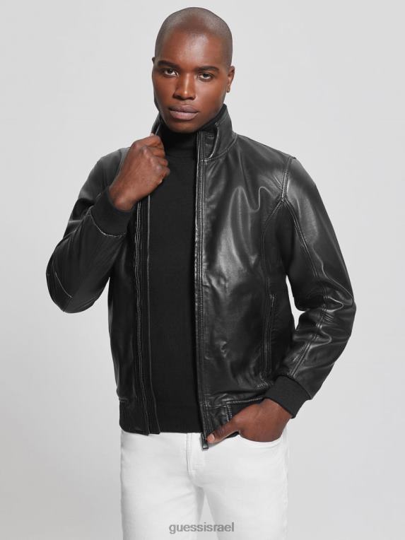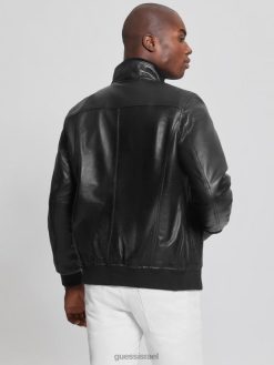 GUESS גברים מעיל עור רך F8RV3953 לבוש שָׁחוֹר