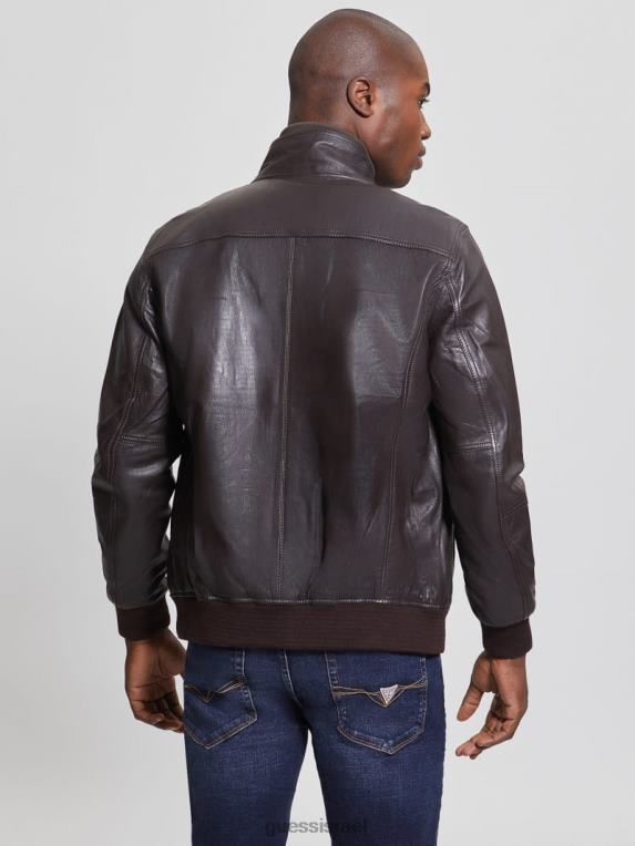 GUESS גברים מעיל עור רך F8RV4139 לבוש קליפה חומה
