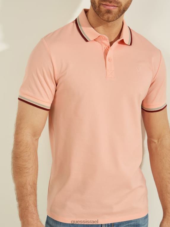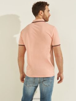 GUESS גברים ספורט פיקה פולו F8RV4031 לבוש פריחה ורוד בהיר