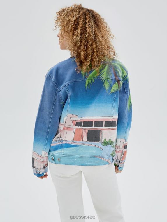 GUESS לִשְׁנֵי הַמִינִים ז’קט ג’ינס מקורי של Sunnyside F8RV1812 לבוש וינטג’ לצד הבריכה
