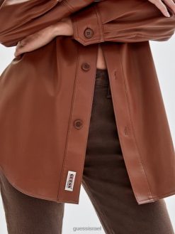 GUESS לִשְׁנֵי הַמִינִים ז’קט חולצה מעור מלאכותי F8RV1859 לבוש מלח כרמל מולטי