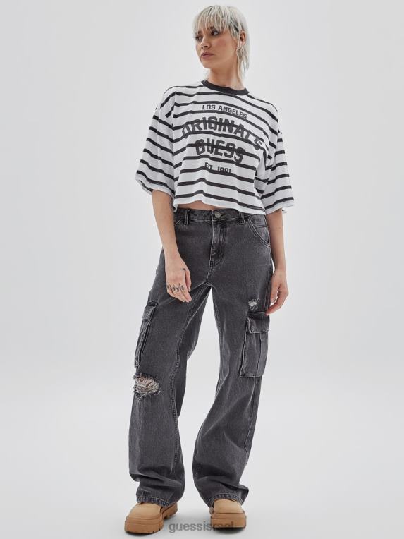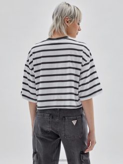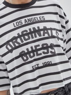 GUESS לִשְׁנֵי הַמִינִים חולצה חתוכה פסים מקוריים F8RV1354 לבוש מולטי אפור מגנטי