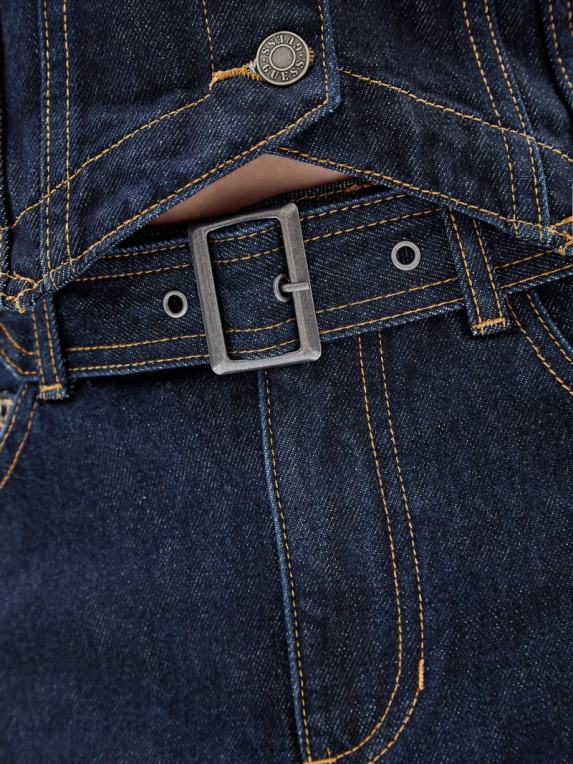 GUESS לִשְׁנֵי הַמִינִים חצאית ג’ינס עם חגורות מקוריות F8RV136 לבוש ללכת לשטוף כהה וינטג’