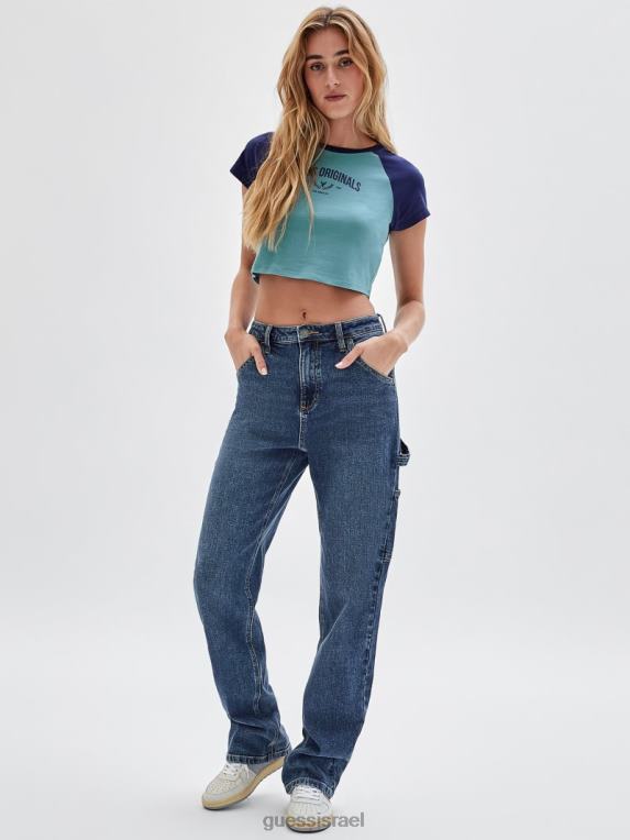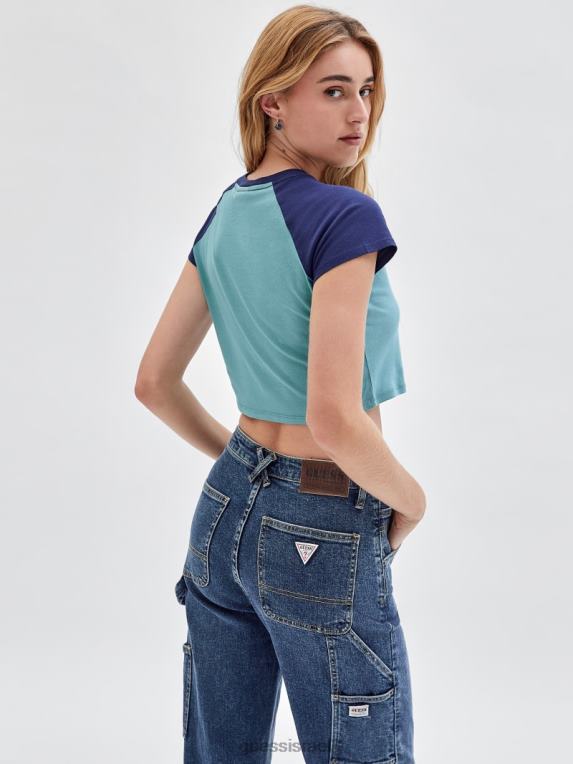 GUESS לִשְׁנֵי הַמִינִים טי תינוק מקורי raglan crop F8RV1318 לבוש מולטי צהבהב רך
