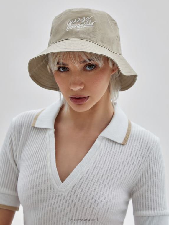 GUESS לִשְׁנֵי הַמִינִים כובע דלי לוגו המקורי F8RV3815 לבוש עירום בז’ חיוור