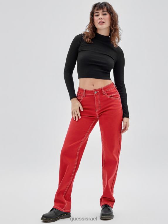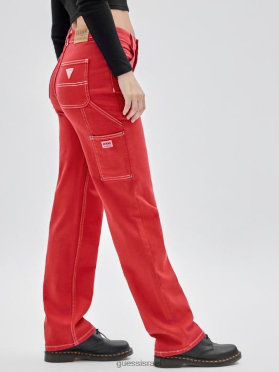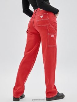 GUESS לִשְׁנֵי הַמִינִים מכנסי ג’ינס נגר בצבעים מקוריים F8RV167 לבוש אדום צ’ילי