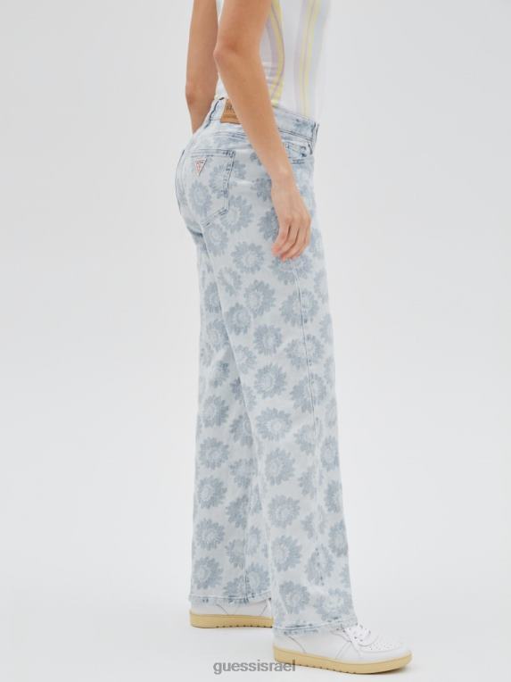 GUESS לִשְׁנֵי הַמִינִים מכנסי ג’ינס רחבי רגליים של דייזי מקוריים F8RV79 לבוש הדפס פרחוני