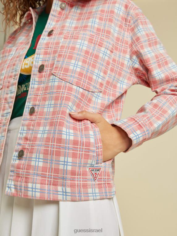 GUESS לִשְׁנֵי הַמִינִים מעיל ג’ינס משובץ מקורי F8RV1841 לבוש מולטי אדום