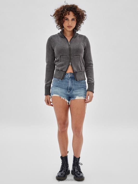 GUESS לִשְׁנֵי הַמִינִים סוודר כפול רוכסן המקורי F8RV1377 לבוש מולטי שחור ג’ט