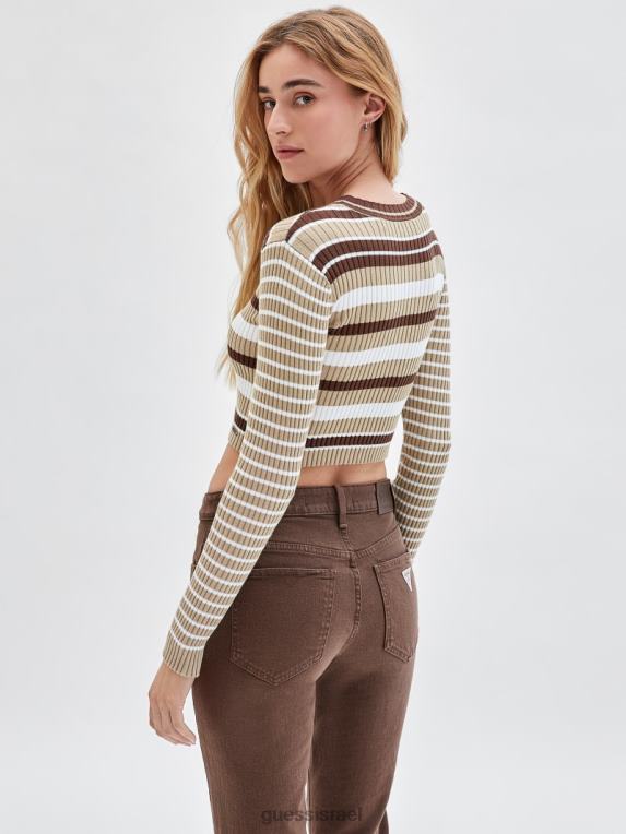 GUESS לִשְׁנֵי הַמִינִים סוודר מצולע אקולוגי של originals F8RV1360 לבוש מולטי אלון חום