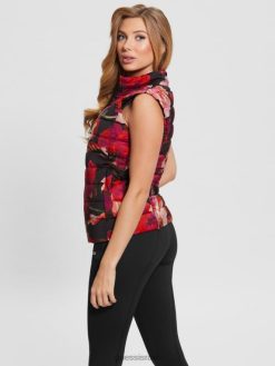 GUESS נשים אפוד פחזנית קורין F8RV1955 לבוש זרימת מאקרו ורוד ושחור