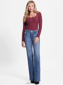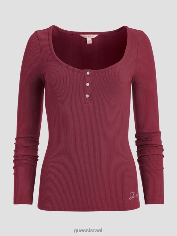 GUESS נשים אקו קארלי הנלי עם שרוולים ארוכים F8RV1606 לבוש אבן טראגית